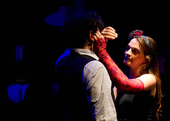 Lo spettacolo è caratterizzato dalla bidimensionalità, non solo della situazione vissuta dai personaggi, ma anche degli spazi della scena. Vediamo, infatti, che gli attori si muovono esclusivamente su un piano laterale e su uno frontale, poiché il mondo di Alvise e Gala è un vero e proprio non luogo.